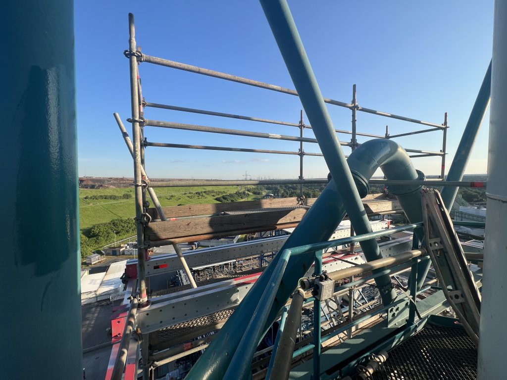 Ein konventionelles Standgerüst hätte aufgrund der Höhe und der baulichen Situation sowohl zusätzliche Stahlbauarbeiten als auch eine Montagezeit von mehr als zwei Wochen erfordert. Außerdem wären betriebliche Abläufe im laufenden Anlagenbetrieb erheblich beeinträchtigt worden.